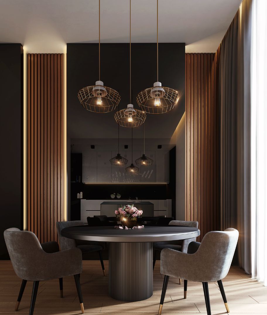 Very elegant and timeless. The table has a strong, traditional feel and the padded chairs make long dinners really comfortable. The chandelier adds charm, and the whole look feels balanced and warm. Definitely elevated our dining area!