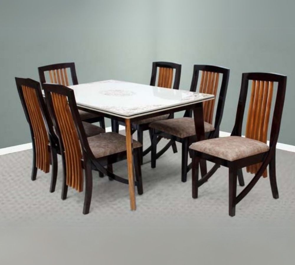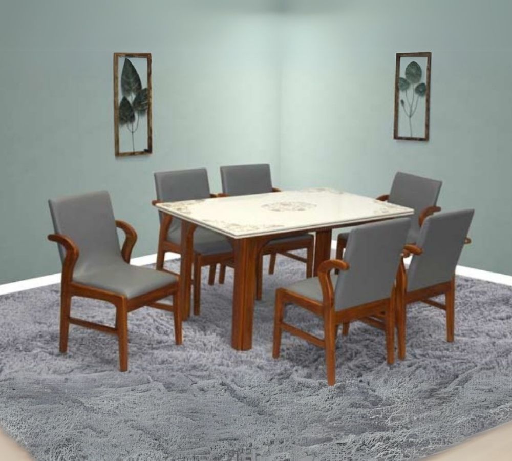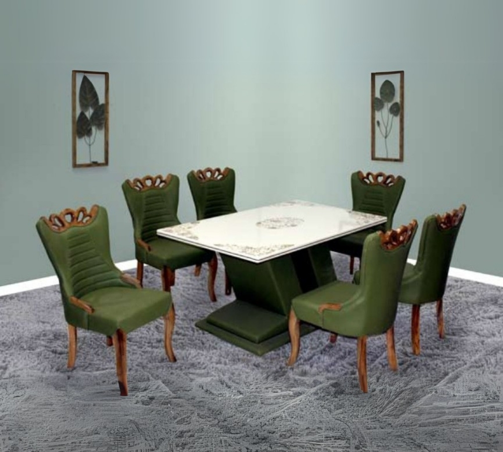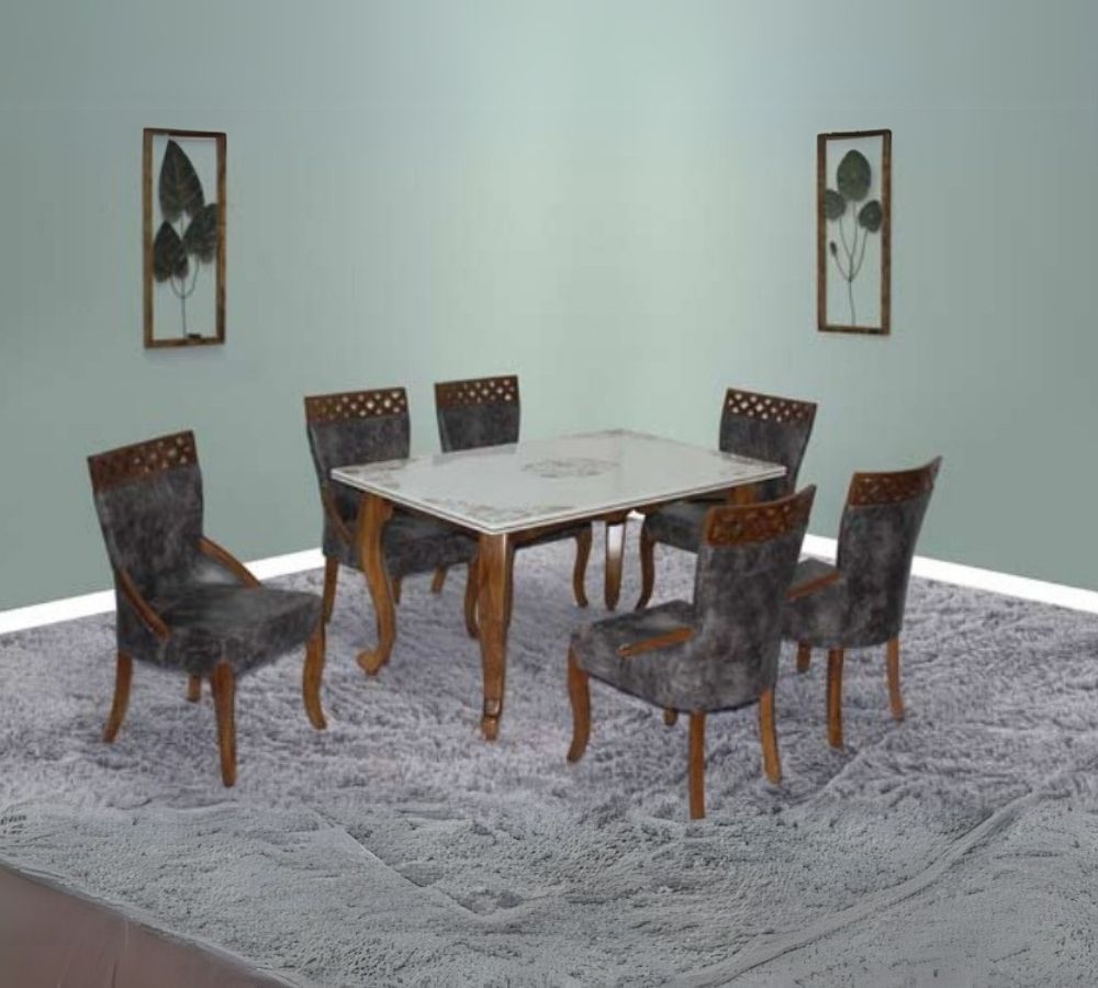 Classic 6-Seater Rectangular Dining Set with Elegant Carved Legs and White Glass Top