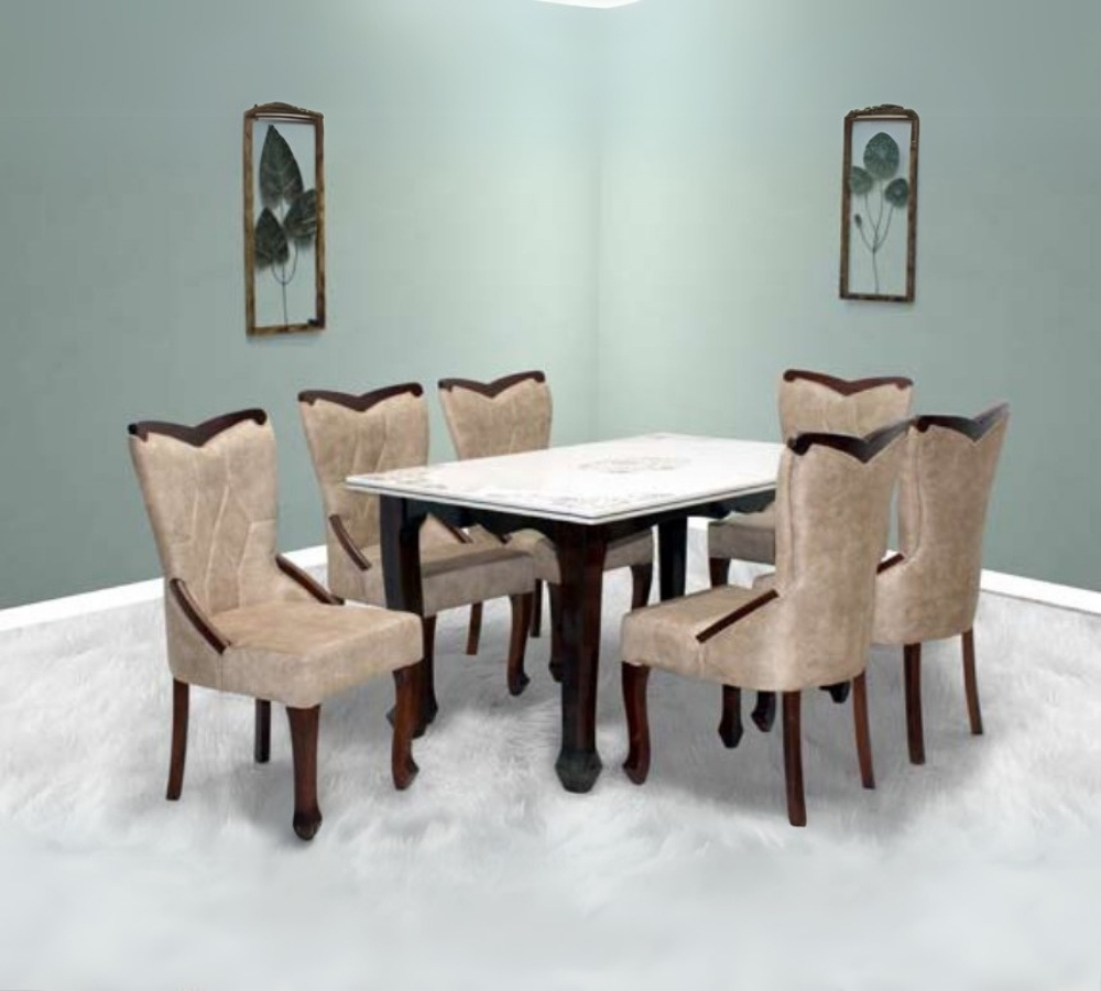 Classic 6-Seater Dining Table Set with Beige Upholstered Chairs and Wooden Accents