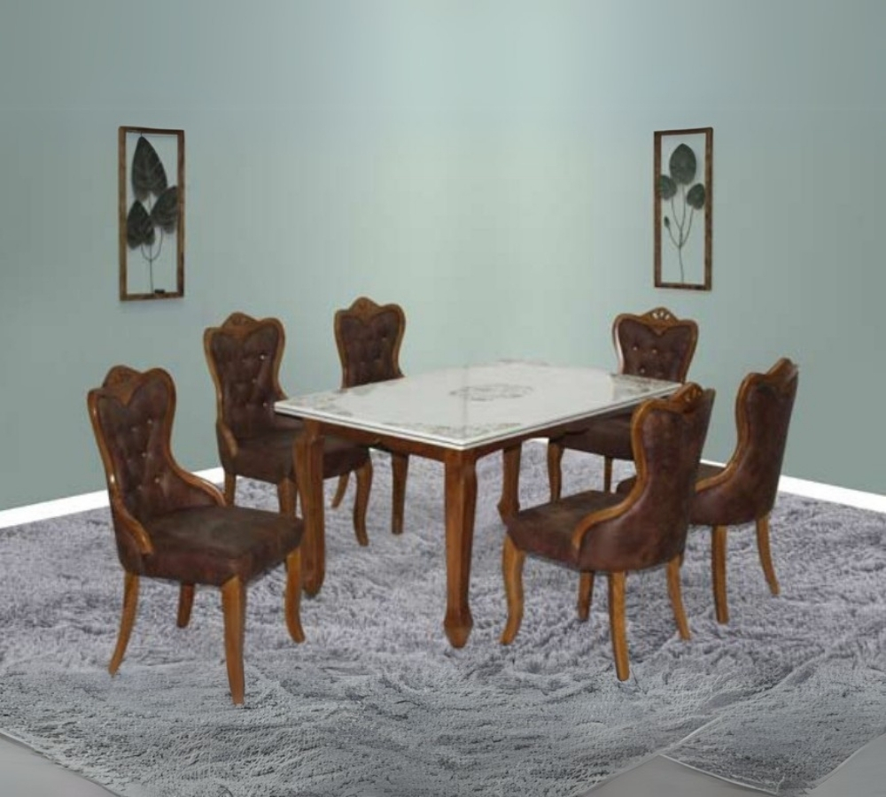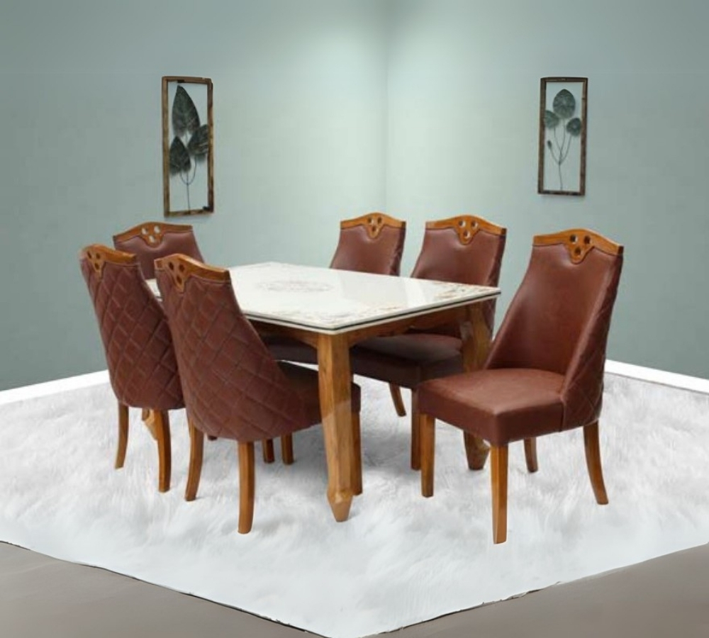 Classic Brown Leather Marble Dining Set