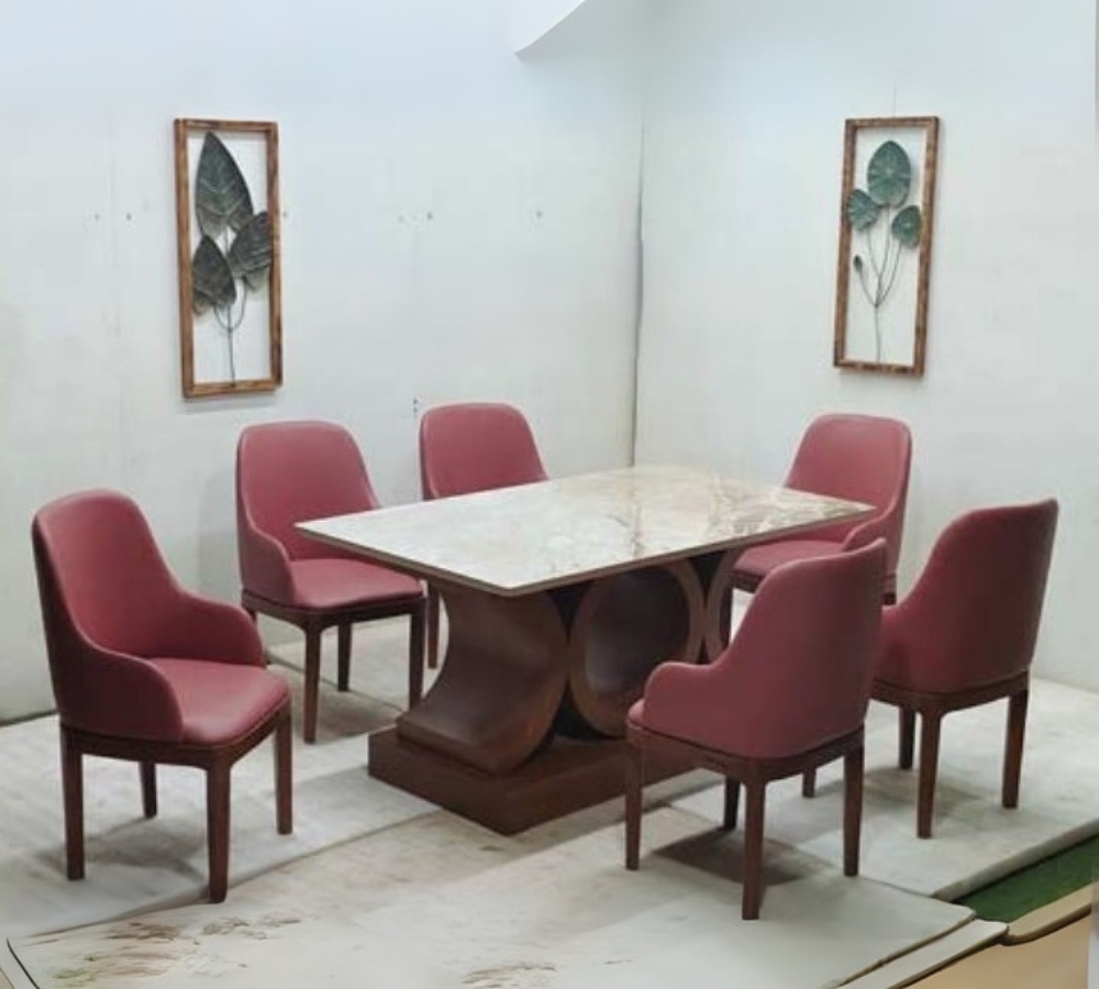 Classic Rosewood Marble Dining Set
