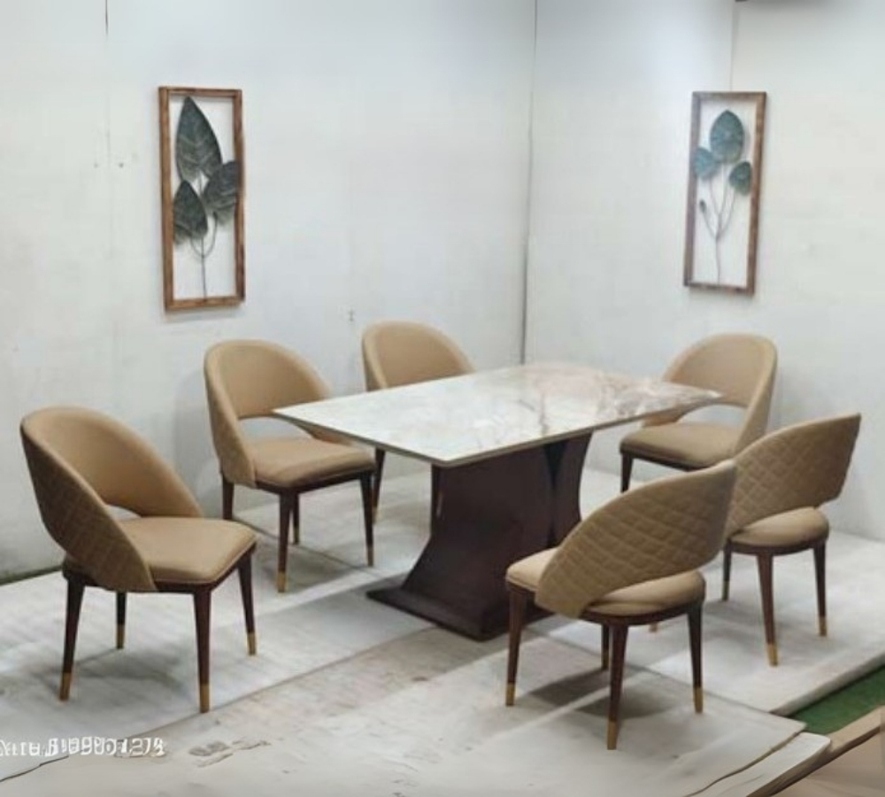 Beige Quilted Back Marble Dining Set