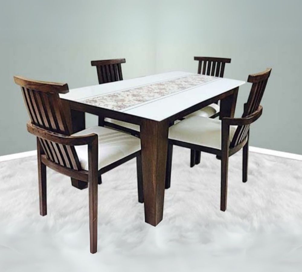 Classic Four-Seater Wooden Dining Set with Upholstered Chairs