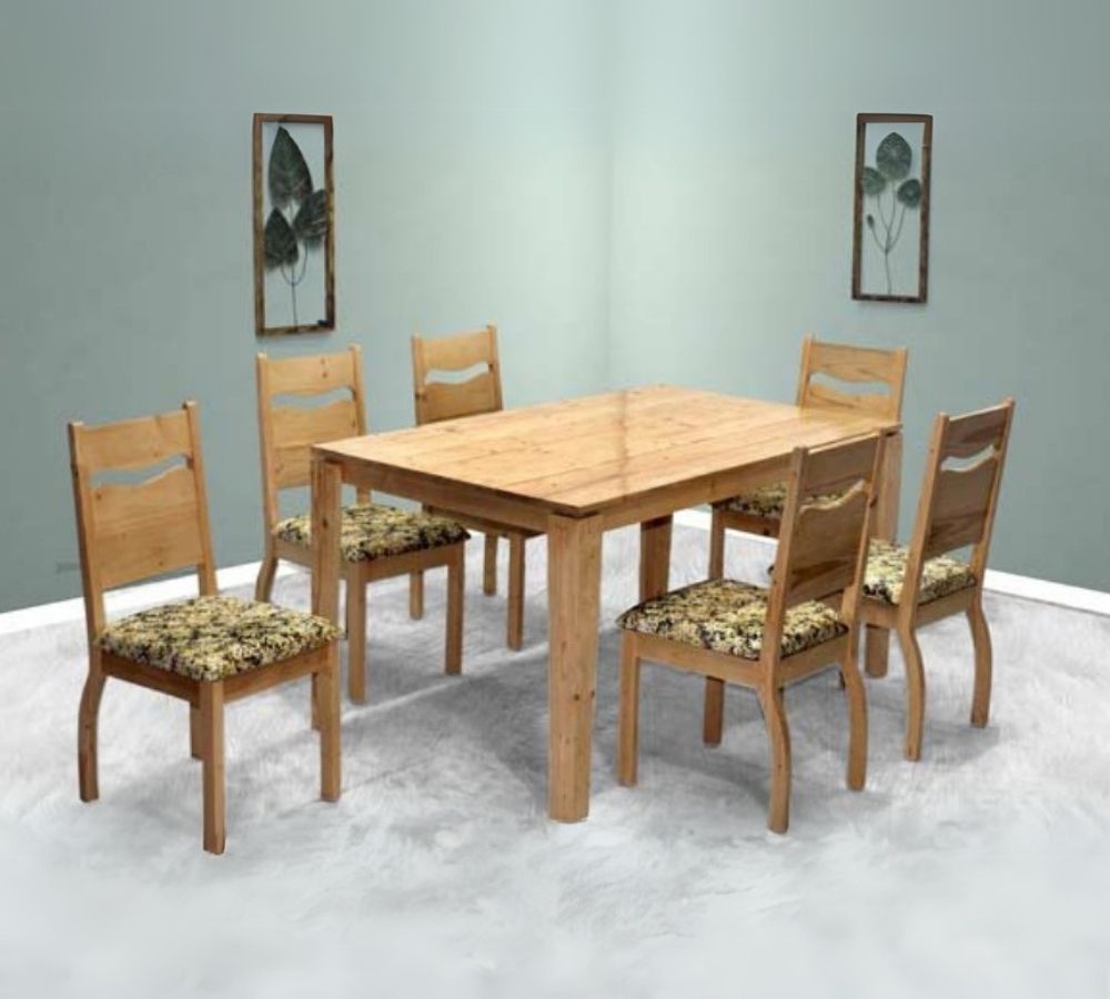 Classic 6-Seater Wooden Dining Set with Floral Upholstered Chairs