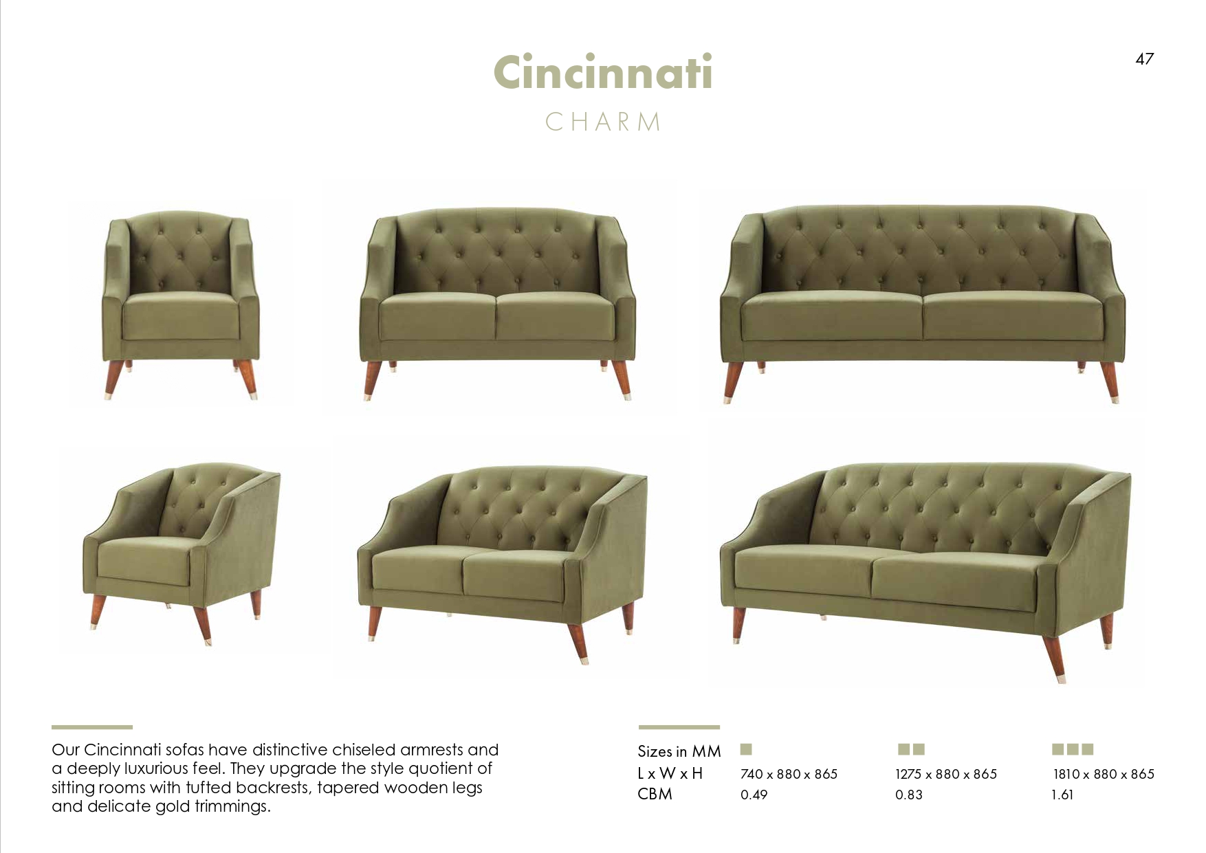 Tapered wooden legs with gold trimmings