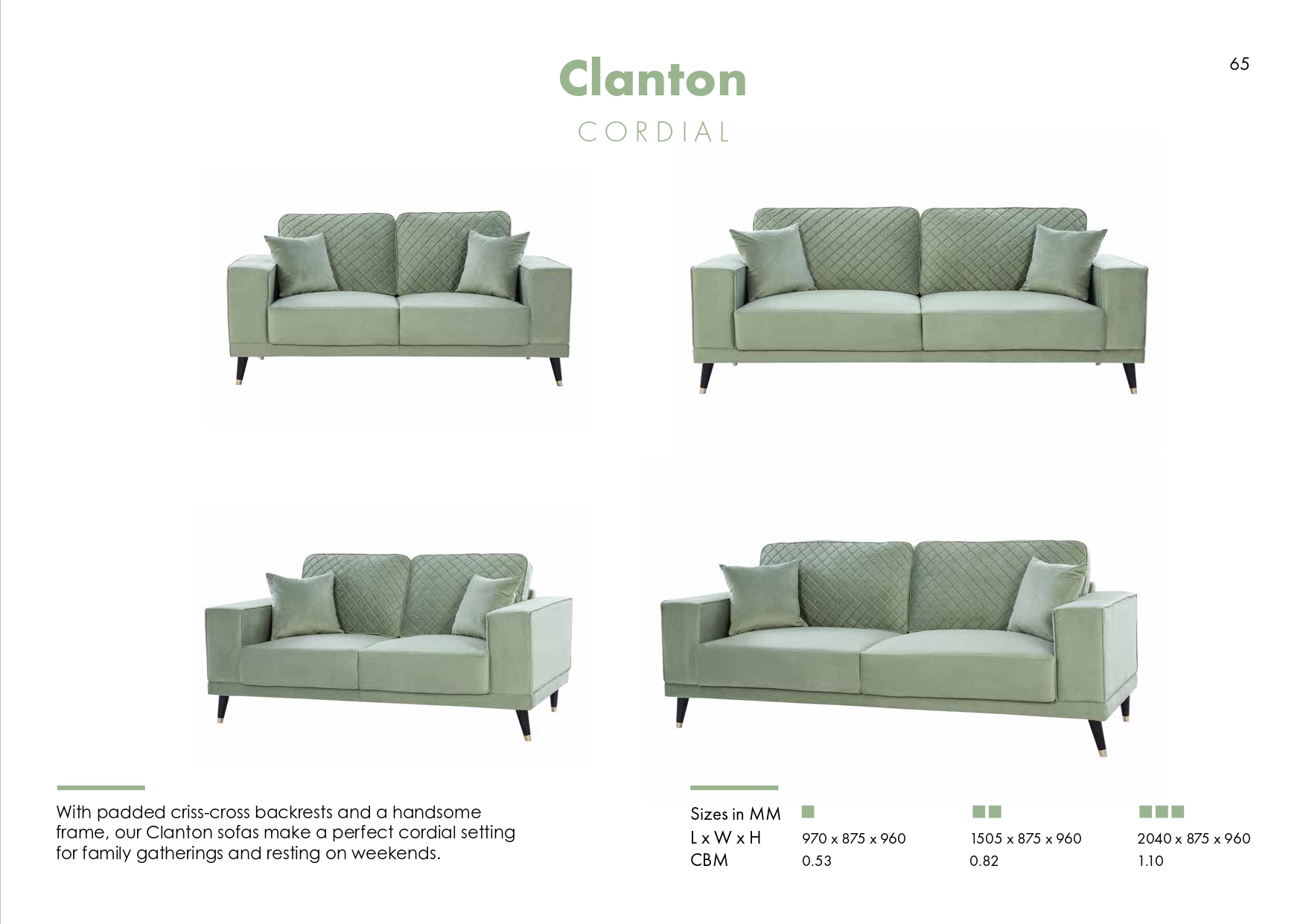 With padded criss-cross backrests and a handsome frame, the Clanton sofas make a perfect cordial setting for family gatherings and relaxing weekends. Featuring plush cushions and sleek armrests, this collection blends modern comfort with a timeless design to enhance any living space.